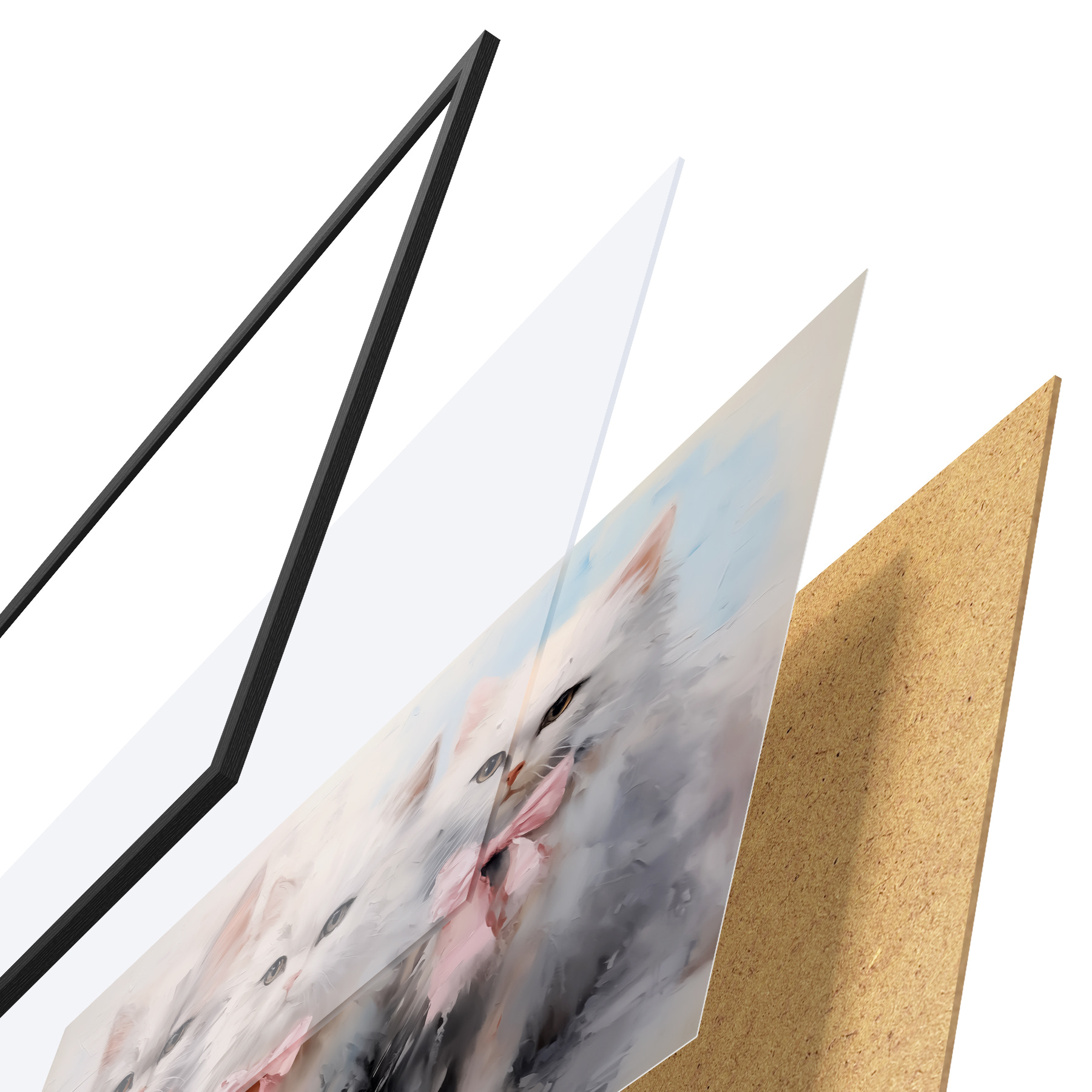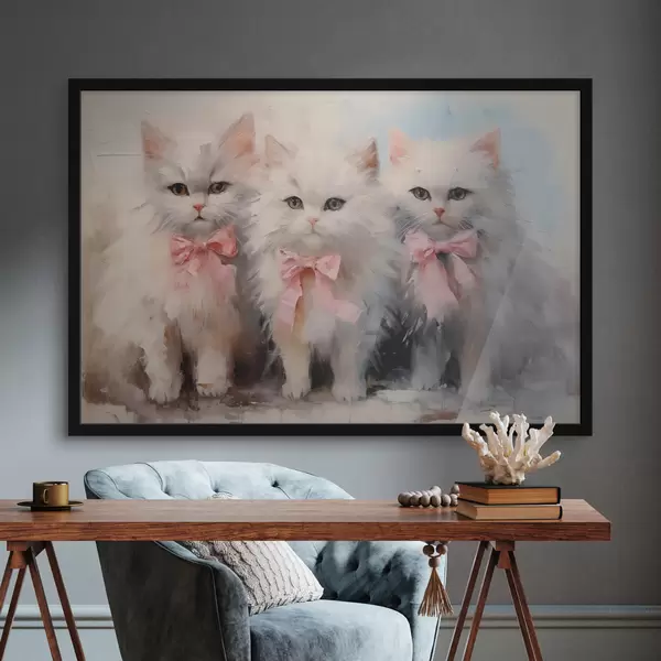 Plakat Valged kassid roosade vibudega õlimaal f39826