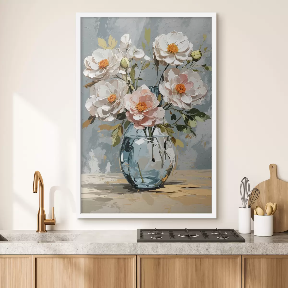 Plakat Valged lilled läbipaistvas vaasis f39850