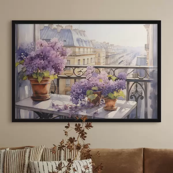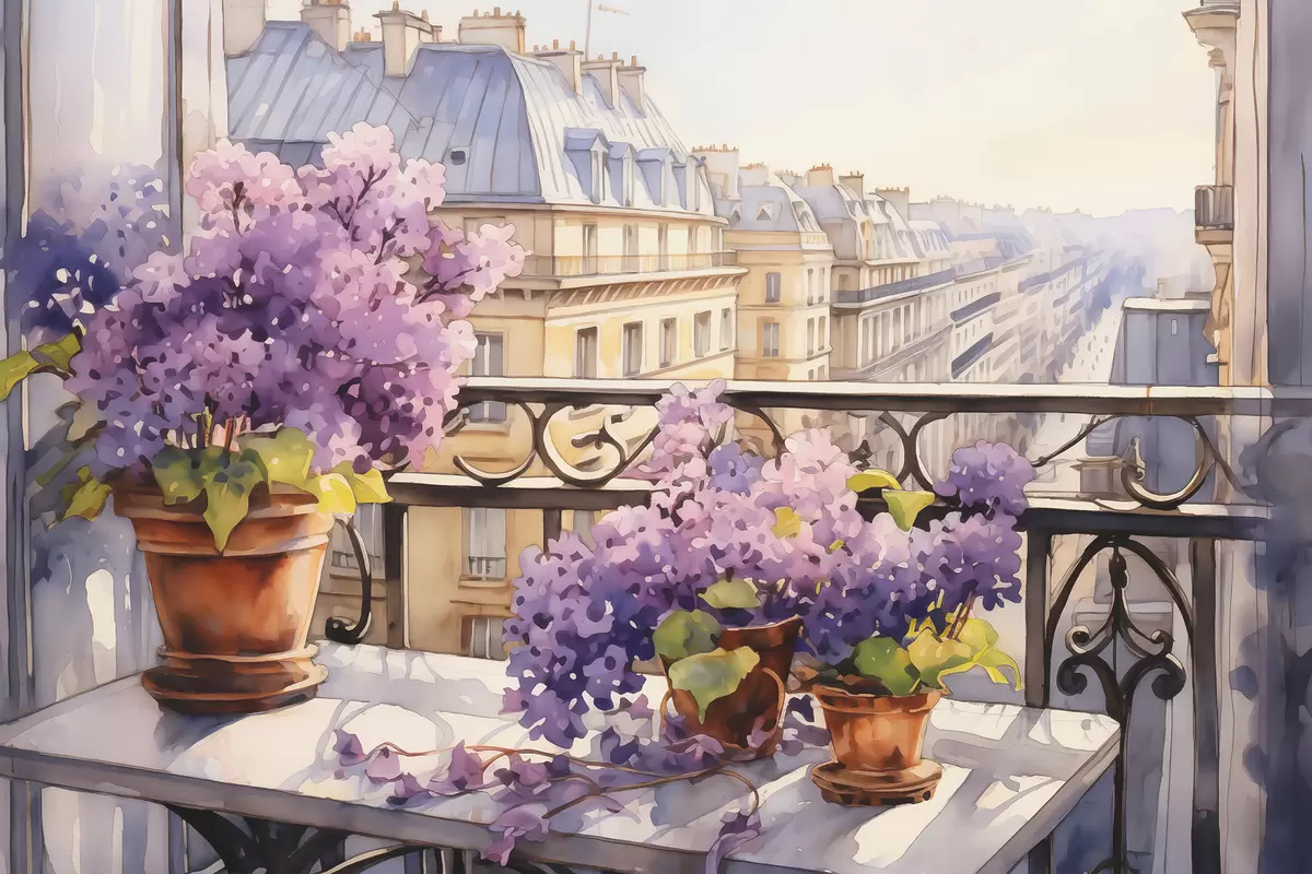 Poster Violetid potis rõdul Pariisi akvarelliga Nr f39931