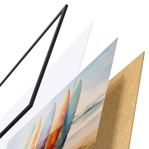 Plakat koosneb raamist, pleksiklaasist, trükitud pildist ja puitlaastplaadist alusplaadist. Tänu tagaküljel olevatele kinnitustele saab plakati kohe seinale riputada.