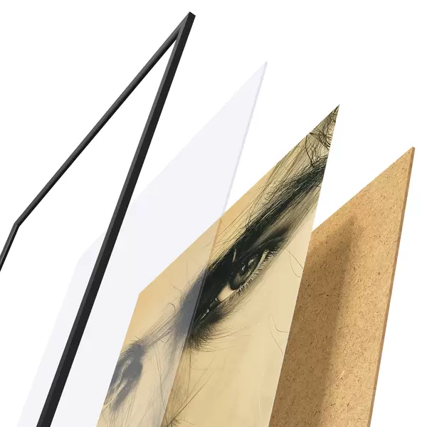Plakat koosneb raamist, pleksiklaasist, trükitud pildist ja puitlaastplaadist alusplaadist. Tänu tagaküljel olevatele kinnitustele saab plakati kohe seinale riputada.