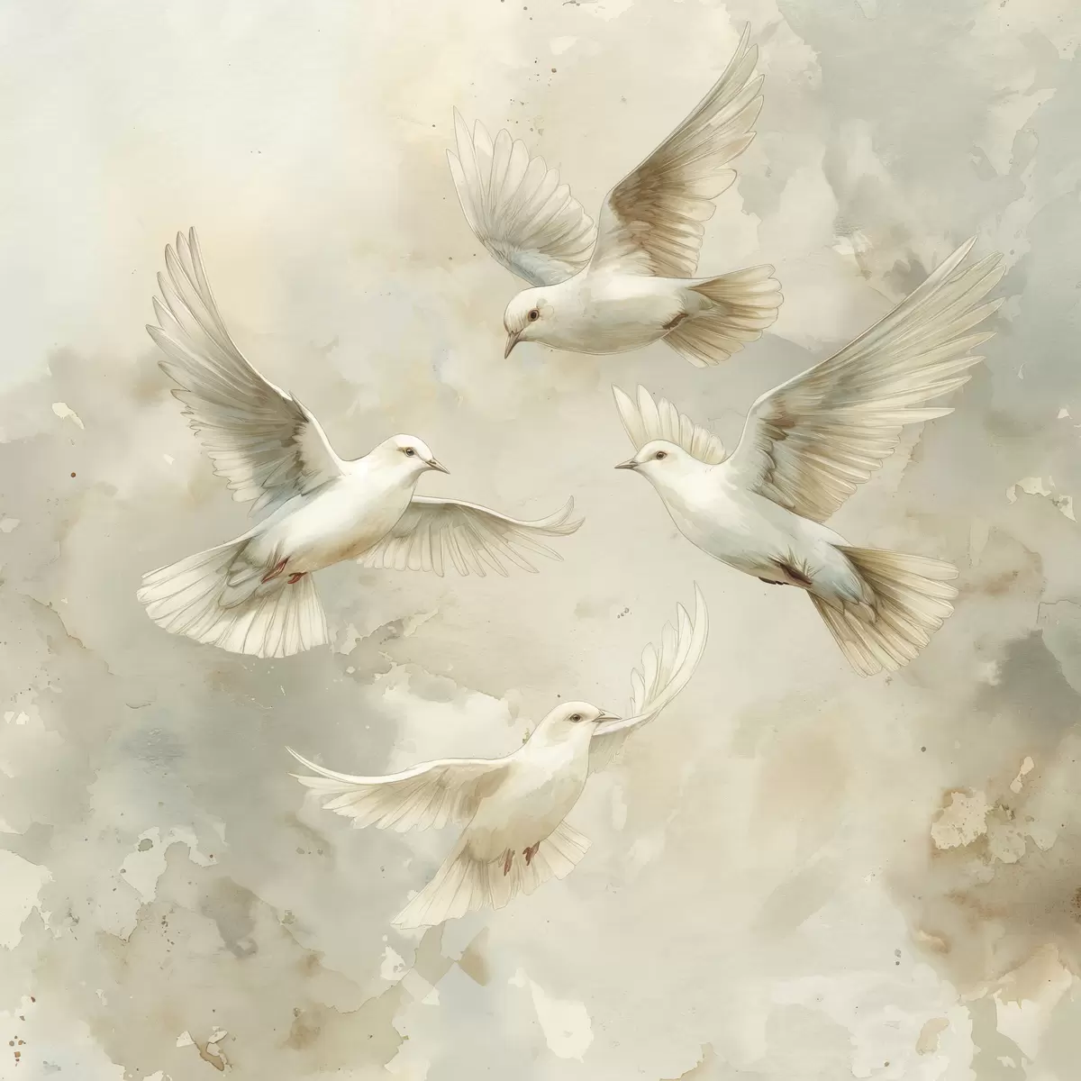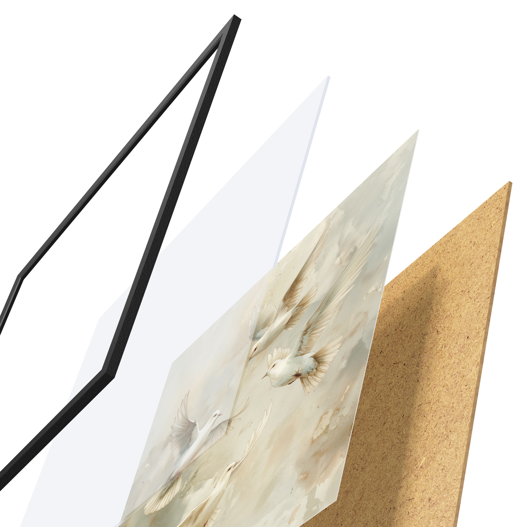 Poster Akvarell lendavad linnud, õrnad beežid ja valged värvid, tuvid Nr f39976
