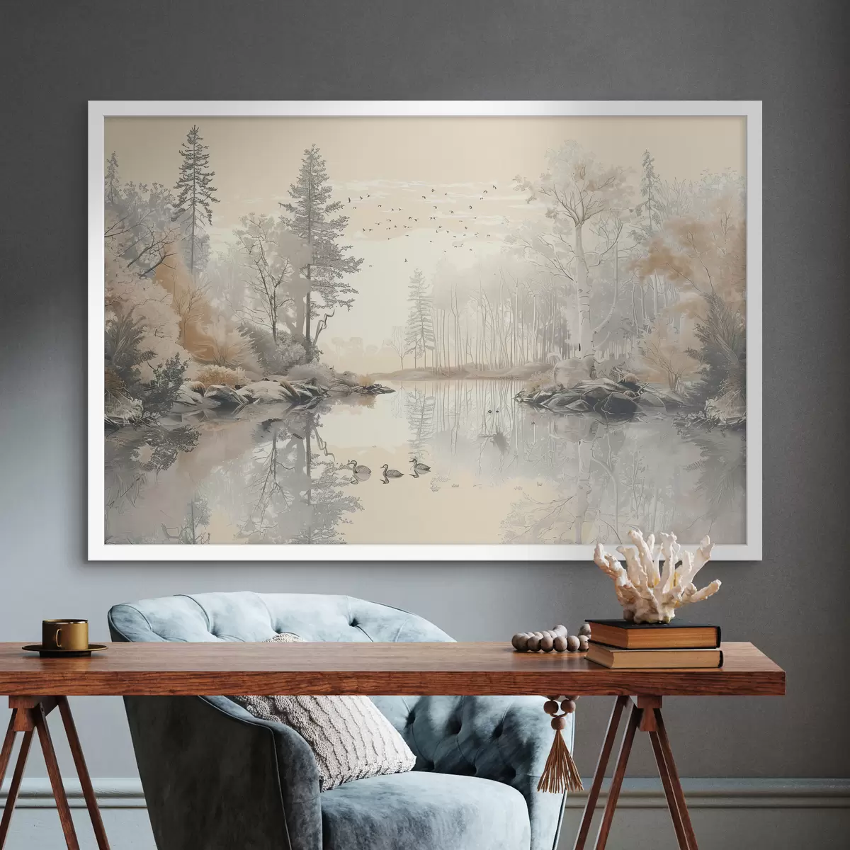 Poster Kaunis loodusmaastik, tiik ja puud, elusloodus, pehmed pastelsed värvid Nr f39980