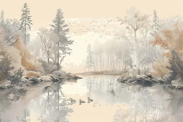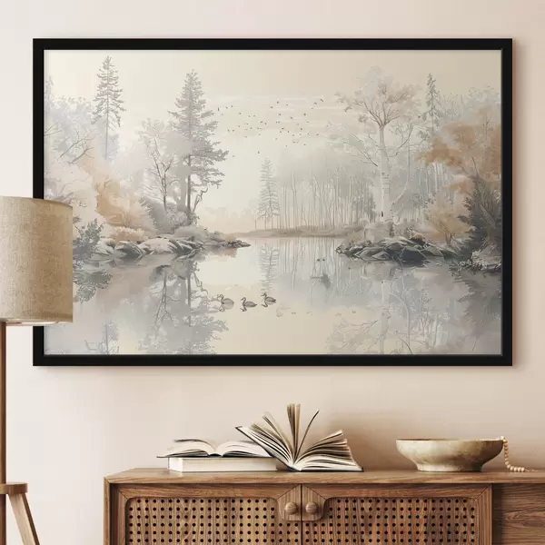 Poster Kaunis loodusmaastik, tiik ja puud, elusloodus, pehmed pastelsed värvid Nr f39980