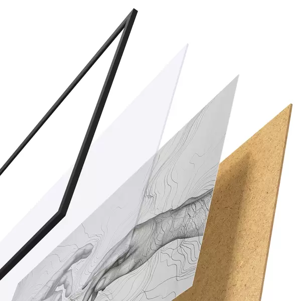 Plakat koosneb raamist, pleksiklaasist, trükitud pildist ja puitlaastplaadist alusplaadist. Tänu tagaküljel olevatele kinnitustele saab plakati kohe seinale riputada.