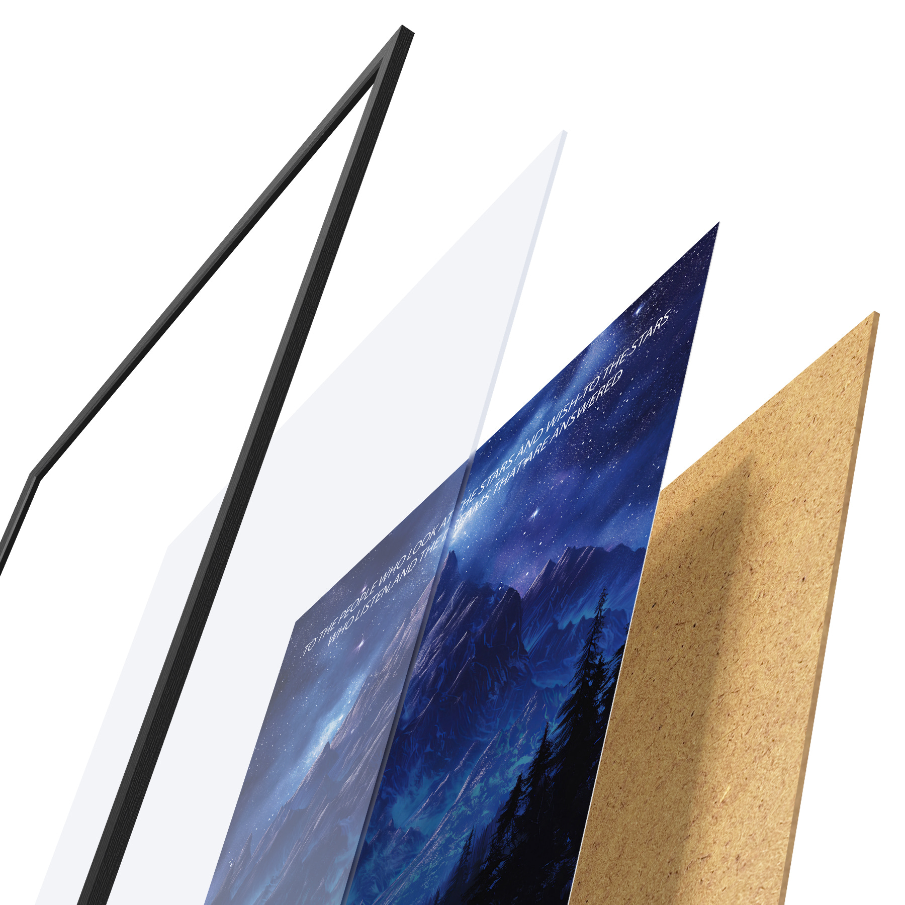 Plakat koosneb raamist, pleksiklaasist, trükitud pildist ja puitlaastplaadist alusplaadist. Tänu tagaküljel olevatele kinnitustele saab plakati kohe seinale riputada.