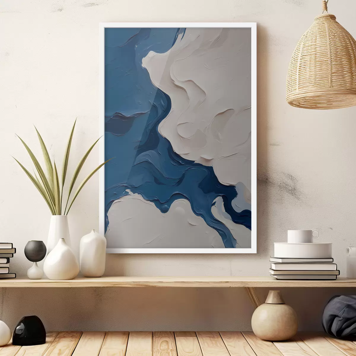Plakat Abstraktsioon valge ja sinise õlivärviga f40058