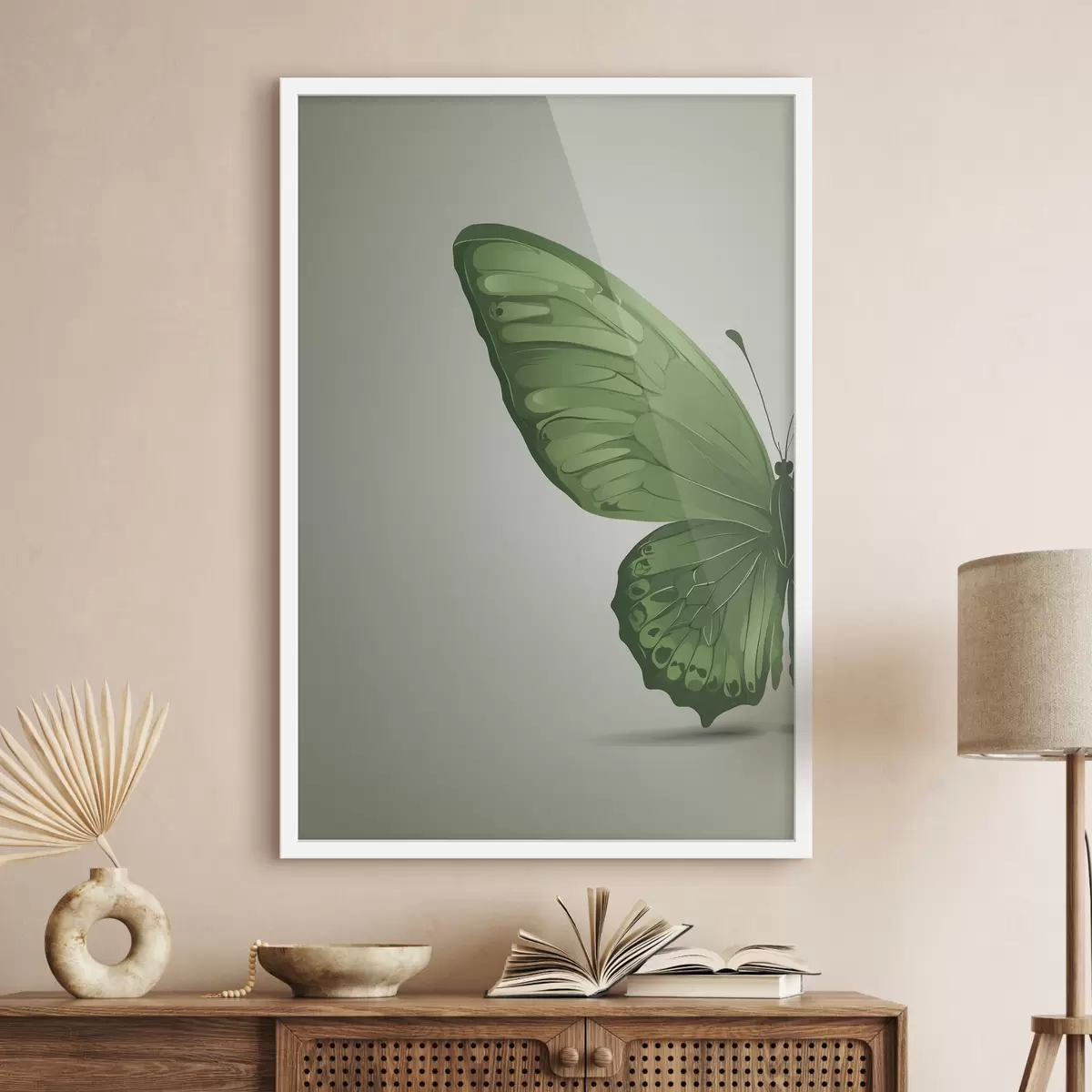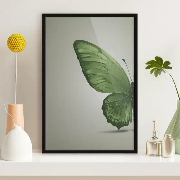 Plakat Rohelise liblika vasak tiib valgel taustal f40062
