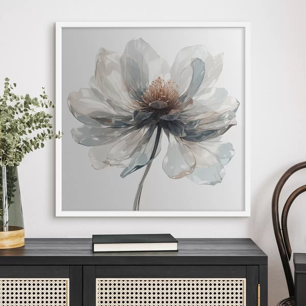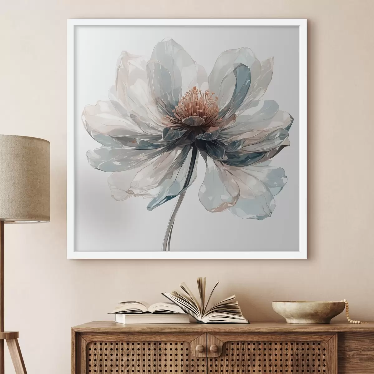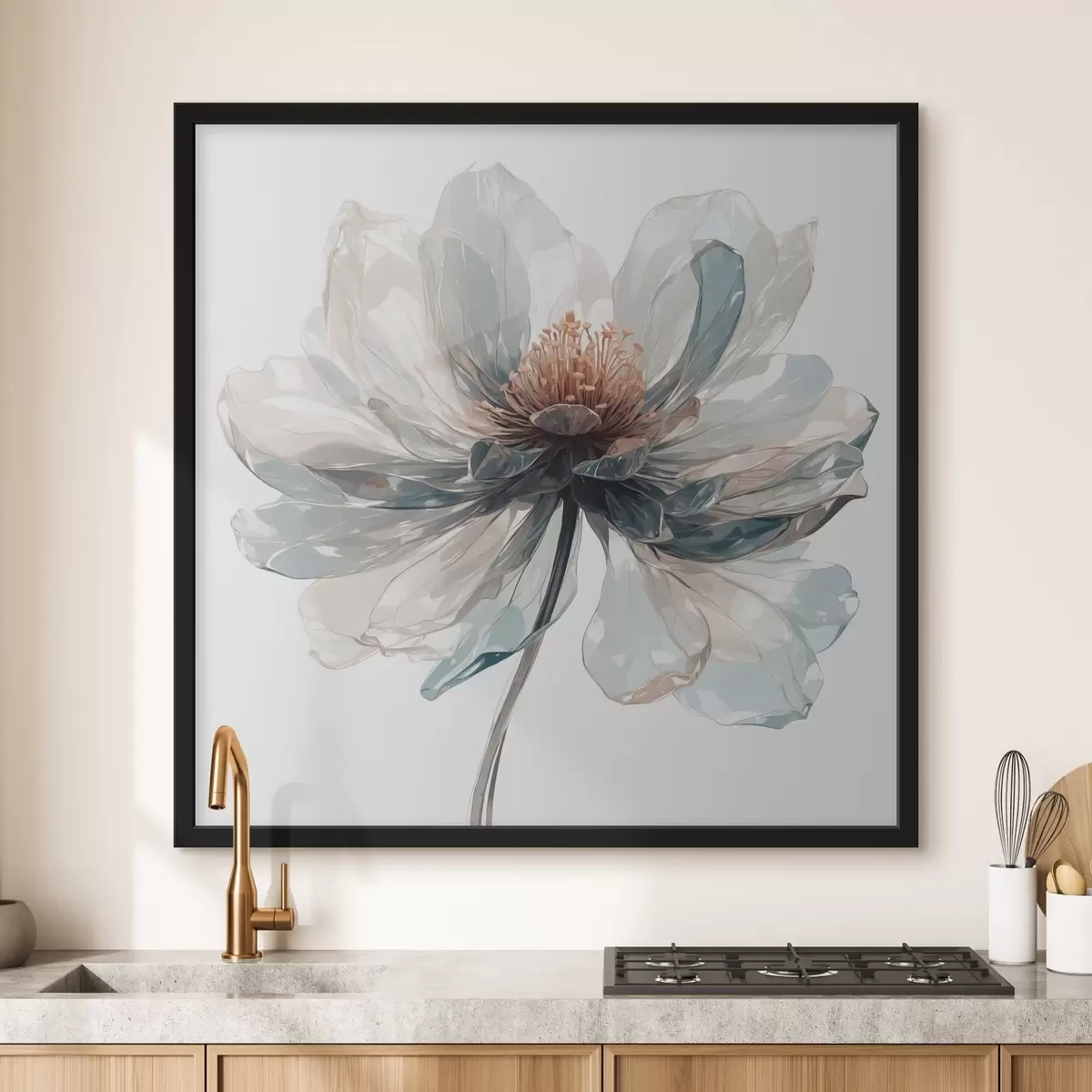 Plakat Läbipaistev sinine lill valgel taustal f40067