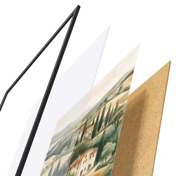 Plakat koosneb raamist, pleksiklaasist, trükitud pildist ja puitlaastplaadist alusplaadist. Tänu tagaküljel olevatele kinnitustele saab plakati kohe seinale riputada.