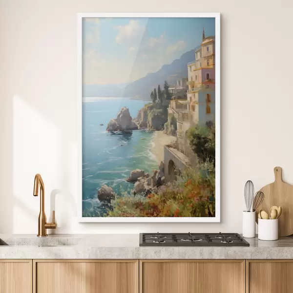 Poster Hotelli õlimaali imitatsioonist vaade mere lahele, mägedele Itaalias Nr f40088