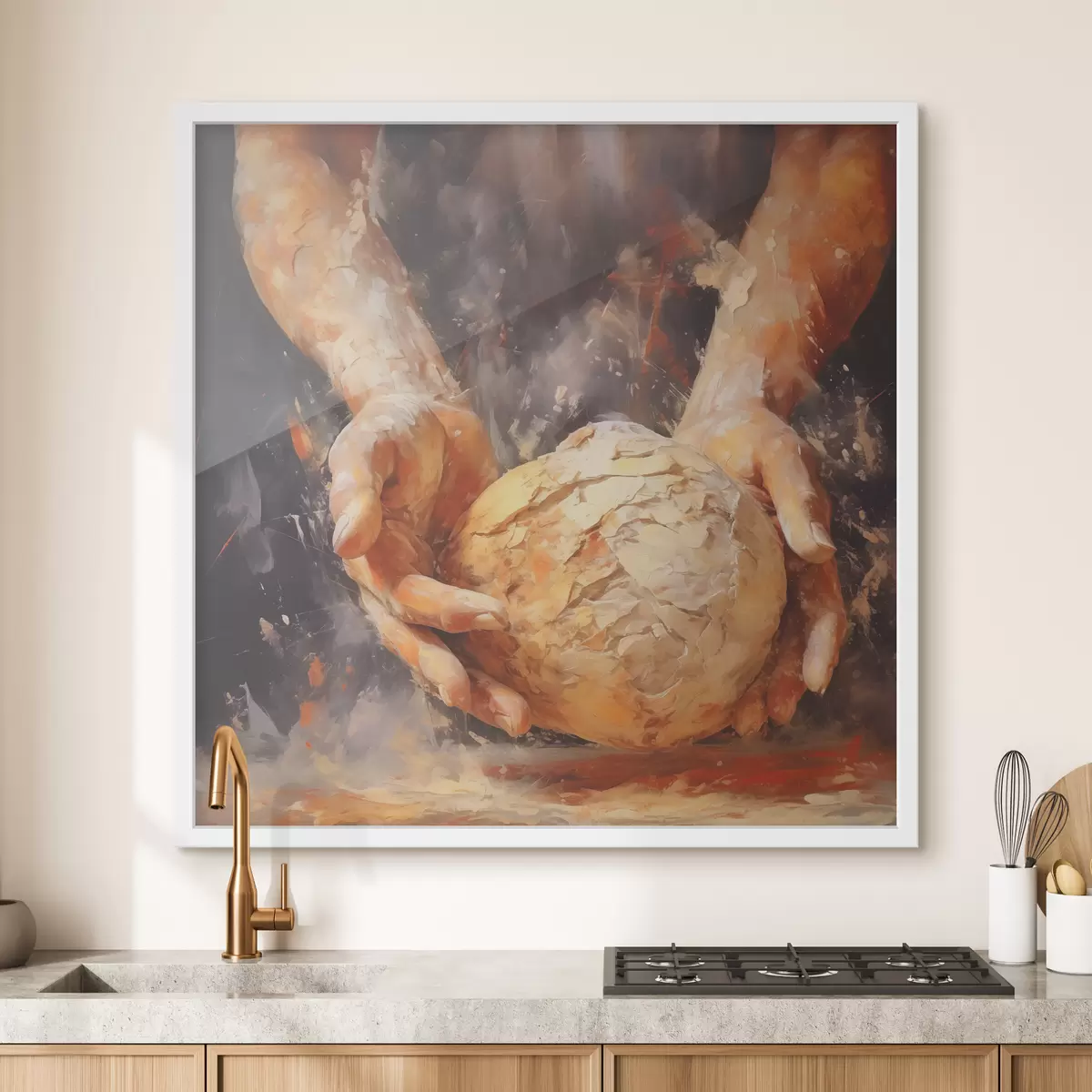 Plakat Pagari käed, mis hoiavad tainast, õlimaali imitatsioon f40095