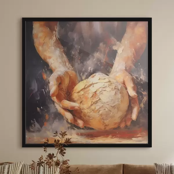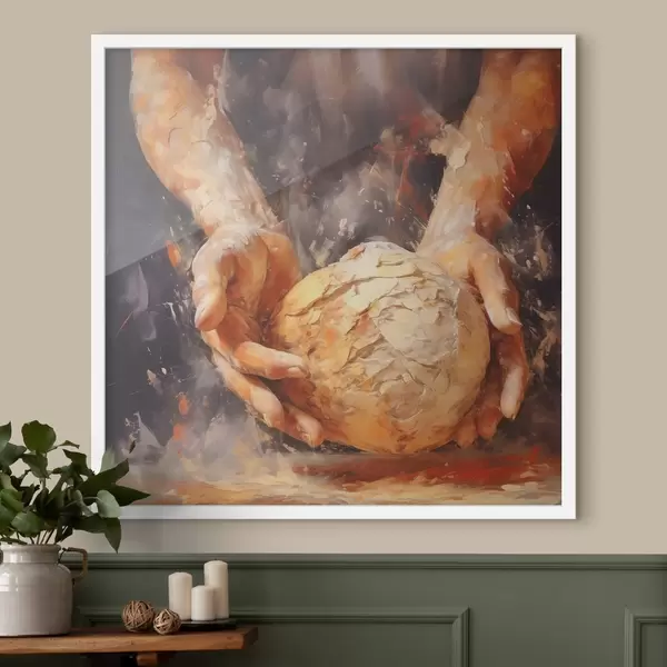 Plakat Pagari käed, mis hoiavad tainast, õlimaali imitatsioon f40095