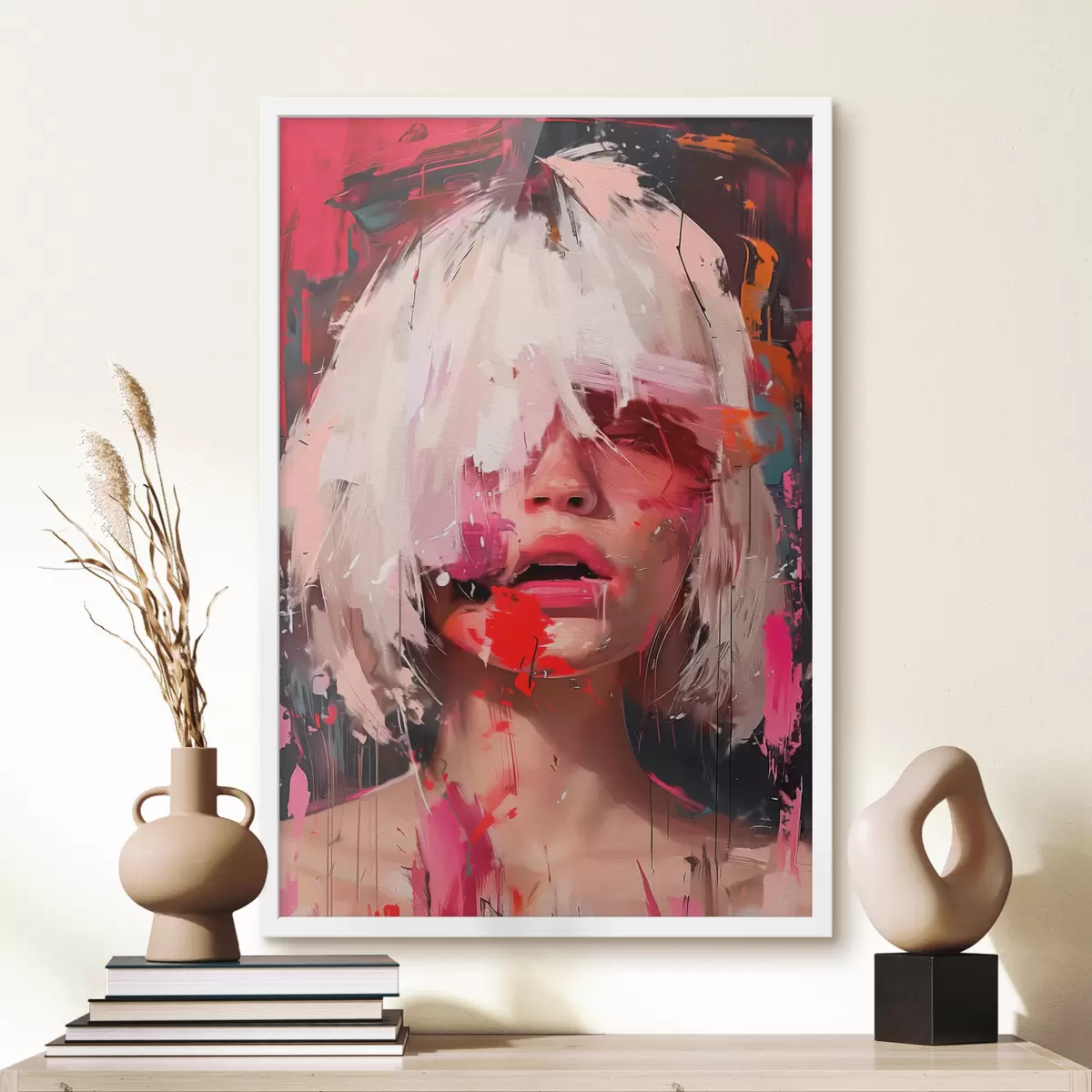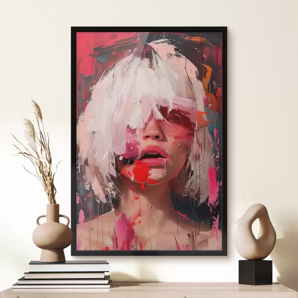 Poster Ruudukujulise bobi ja värvilise värviga blond tüdruk Nr f40110