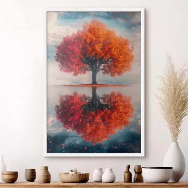 Plakat Puu peegeldusega vees f40126