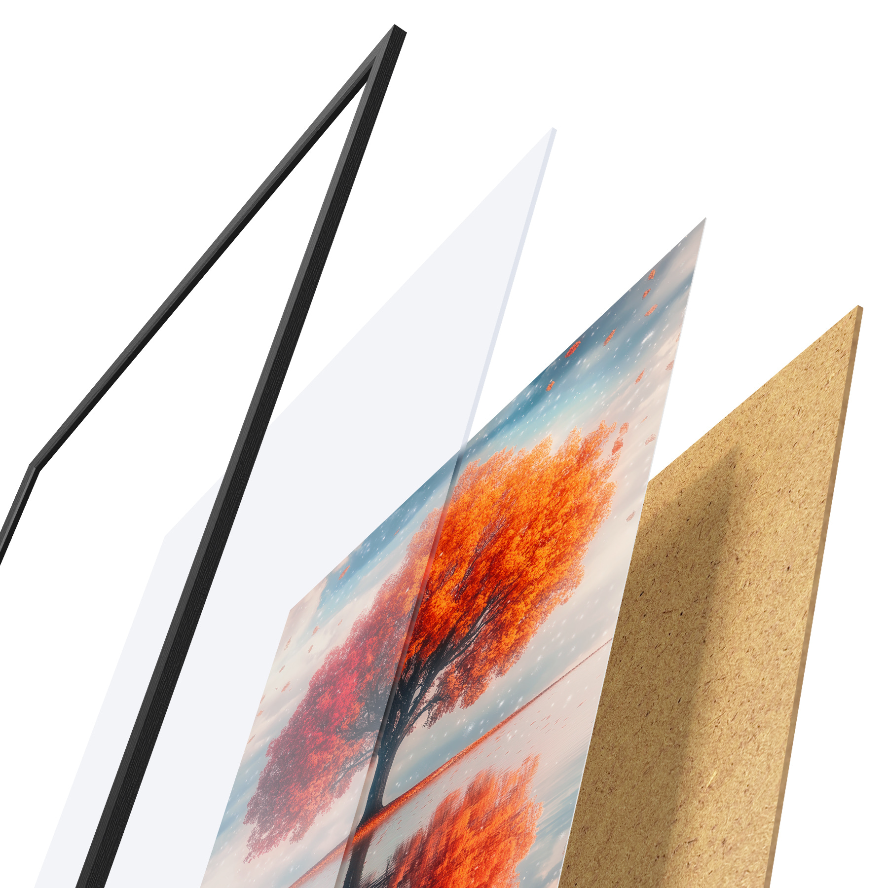 Plakat koosneb raamist, pleksiklaasist, trükitud pildist ja puitlaastplaadist alusplaadist. Tänu tagaküljel olevatele kinnitustele saab plakati kohe seinale riputada.