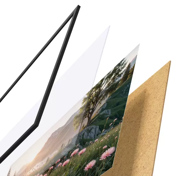 Plakat koosneb raamist, pleksiklaasist, trükitud pildist ja puitlaastplaadist alusplaadist. Tänu tagaküljel olevatele kinnitustele saab plakati kohe seinale riputada.