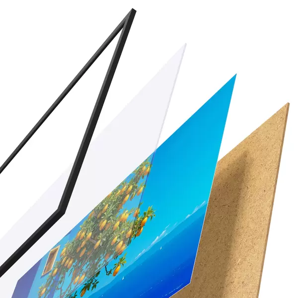 Plakat koosneb raamist, pleksiklaasist, trükitud pildist ja puitlaastplaadist alusplaadist. Tänu tagaküljel olevatele kinnitustele saab plakati kohe seinale riputada.