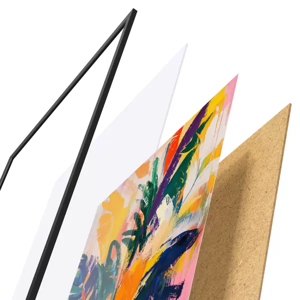 Plakat koosneb raamist, pleksiklaasist, trükitud pildist ja puitlaastplaadist alusplaadist. Tänu tagaküljel olevatele kinnitustele saab plakati kohe seinale riputada.