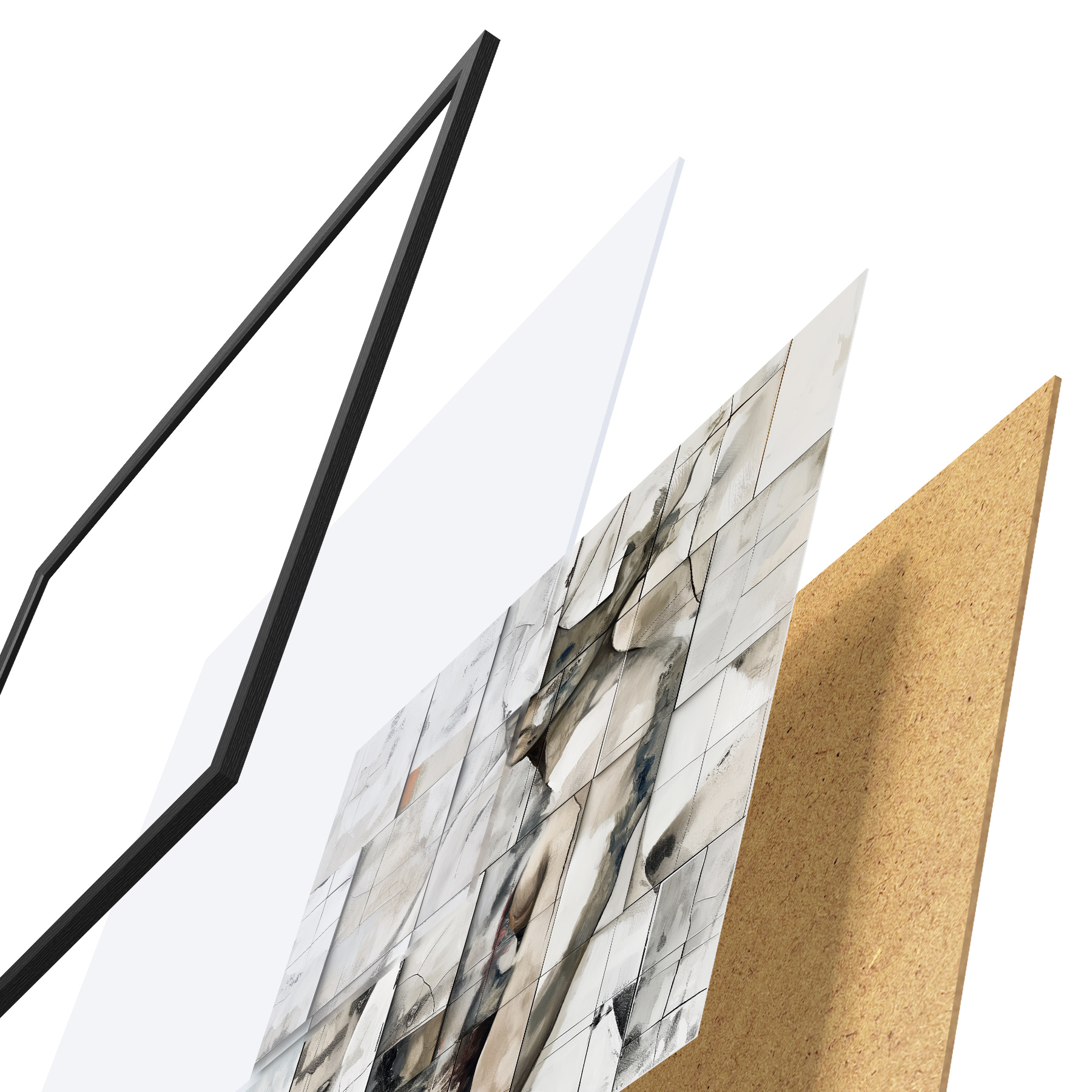 Plakat koosneb raamist, pleksiklaasist, trükitud pildist ja puitlaastplaadist alusplaadist. Tänu tagaküljel olevatele kinnitustele saab plakati kohe seinale riputada.