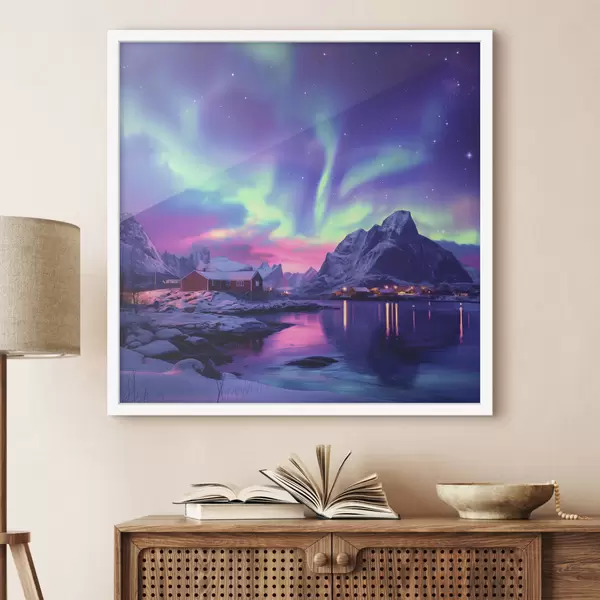 Poster Lofootide saarte põhjatuled, Norra loodus, talv Nr f40298