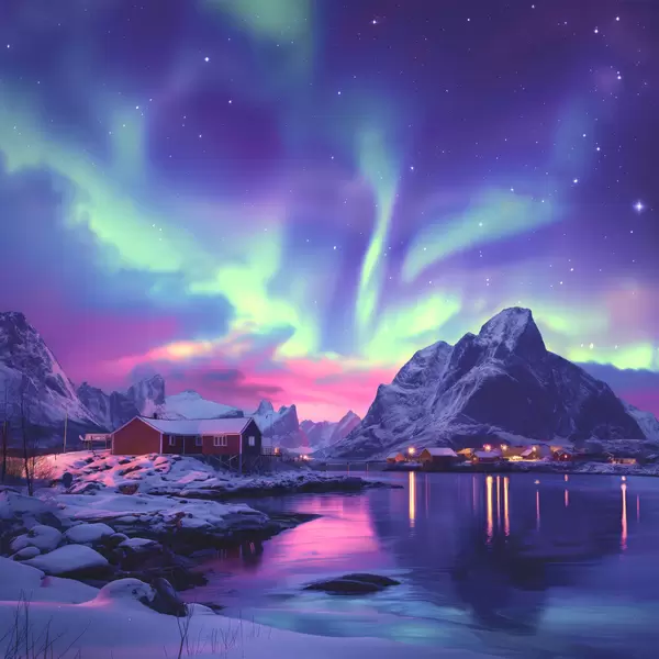 Poster Lofootide saarte põhjatuled, Norra loodus, talv Nr f40298