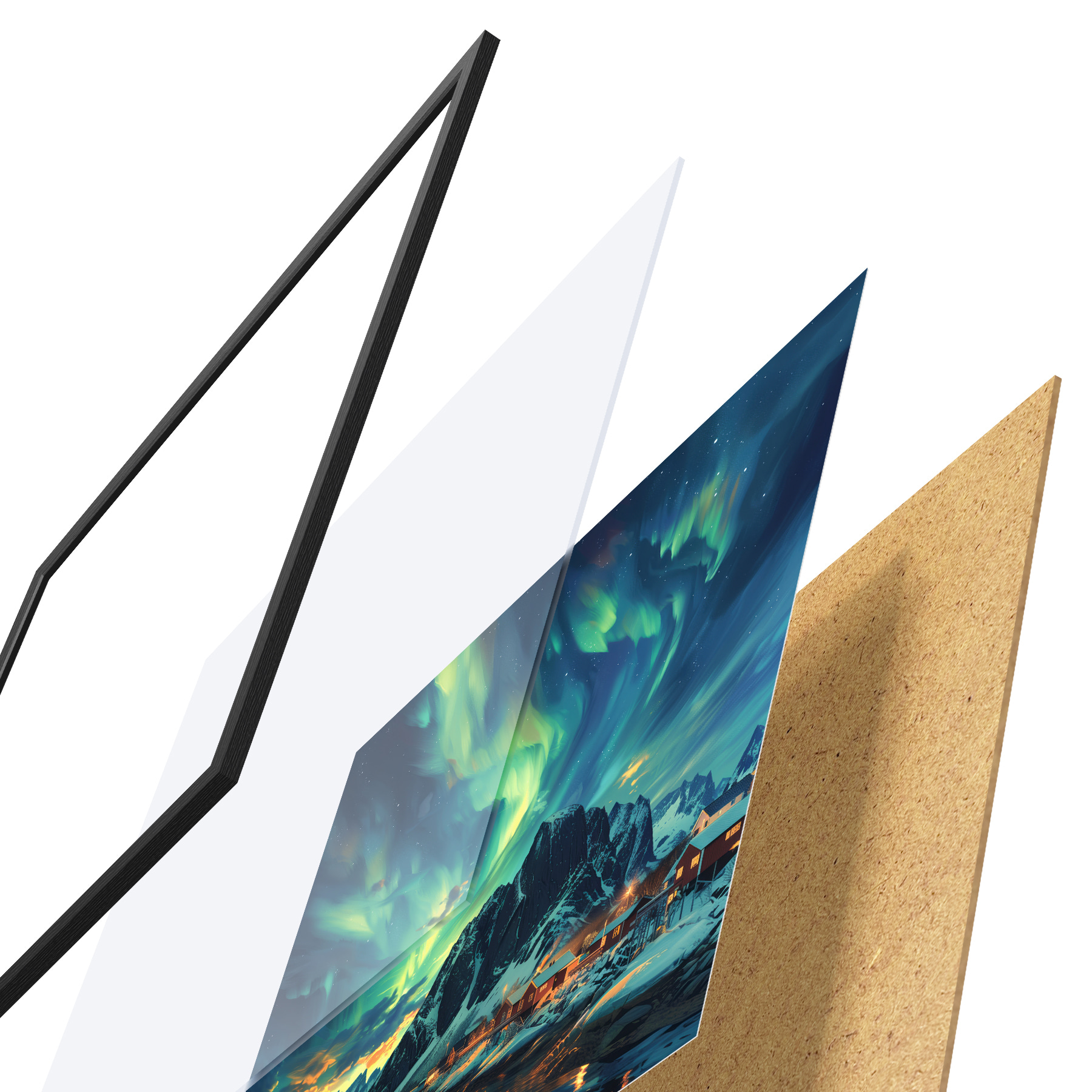 Plakat Lofootide saared, põhjatuled, talveküla f40299