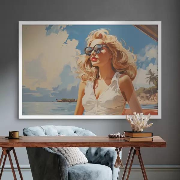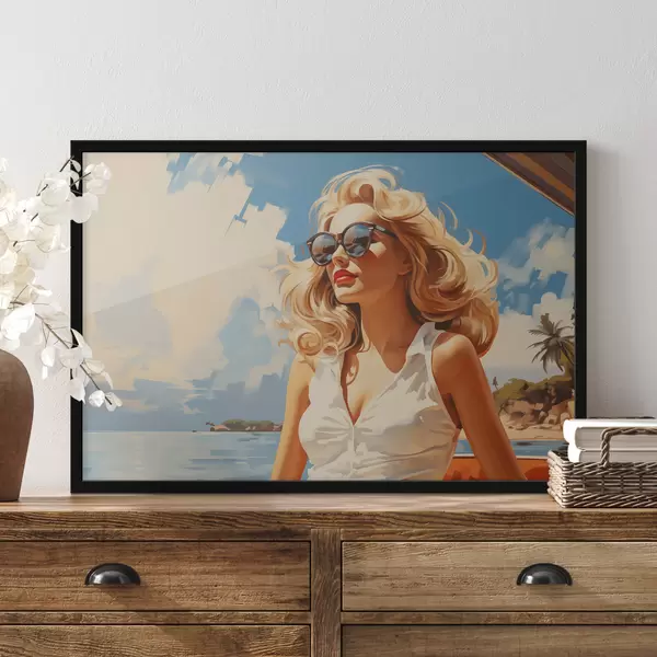 Plakat Blond tüdruk mere taustal illustratsioon f40321