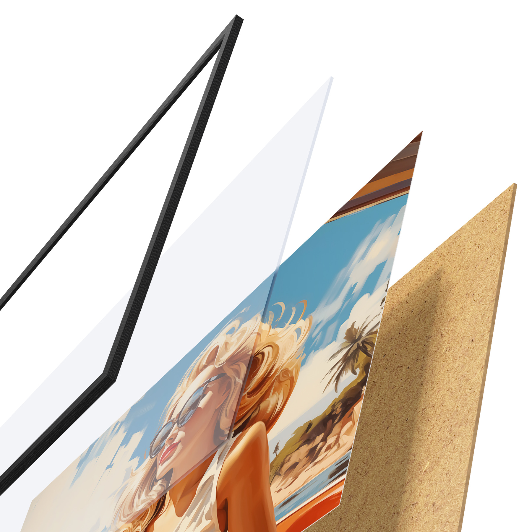 Plakat koosneb raamist, pleksiklaasist, trükitud pildist ja puitlaastplaadist alusplaadist. Tänu tagaküljel olevatele kinnitustele saab plakati kohe seinale riputada.