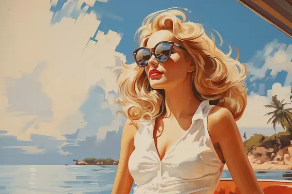 Plakat Blond tüdruk mere taustal illustratsioon f40321