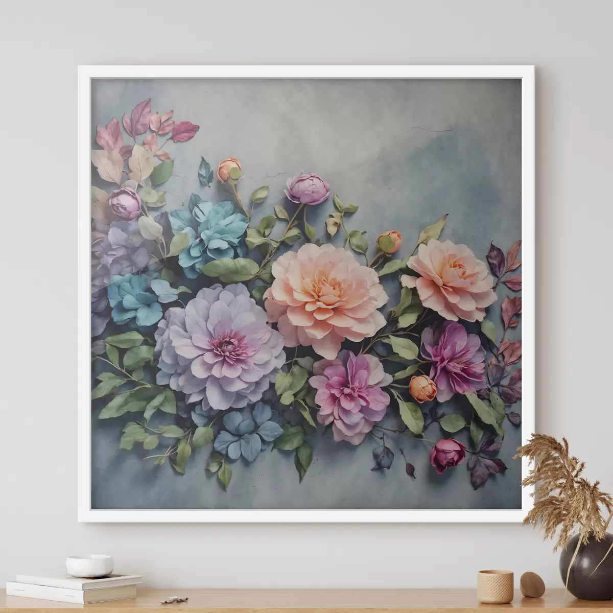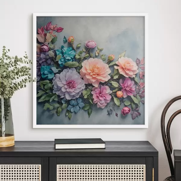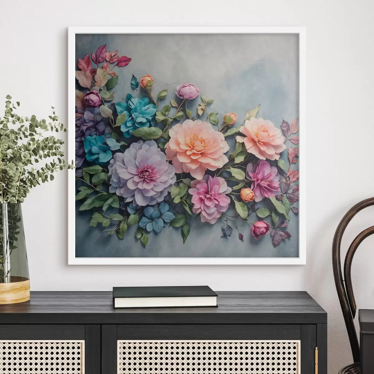 Poster Lilled ja lehed sinisel taustal Nr f40346