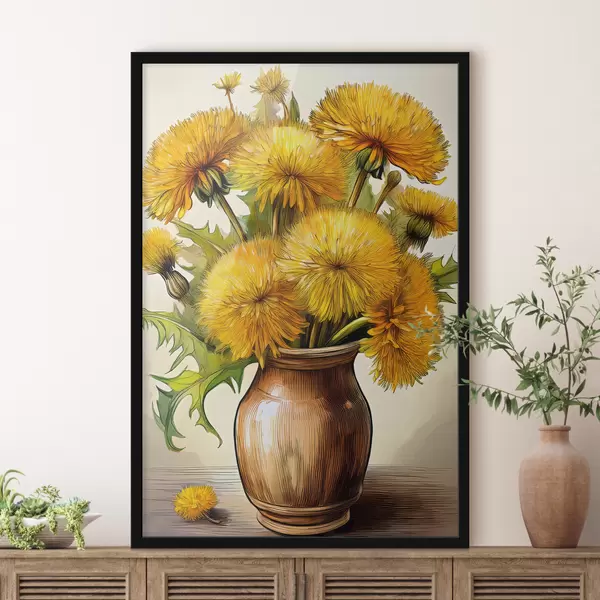Poster võililled, võilillebukett vaasis, kollased võililled Nr f40418