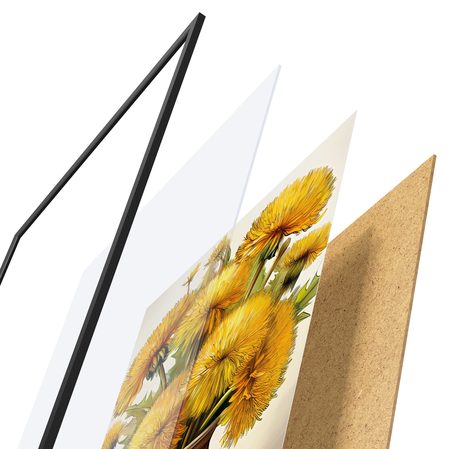 Plakat koosneb raamist, pleksiklaasist, trükitud pildist ja puitlaastplaadist alusplaadist. Tänu tagaküljel olevatele kinnitustele saab plakati kohe seinale riputada.