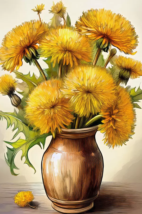 Poster võililled, võilillebukett vaasis, kollased võililled Nr f40418
