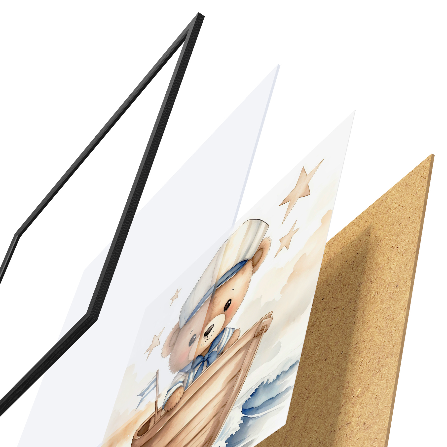 Plakat koosneb raamist, pleksiklaasist, trükitud pildist ja puitlaastplaadist alusplaadist. Tänu tagaküljel olevatele kinnitustele saab plakati kohe seinale riputada.