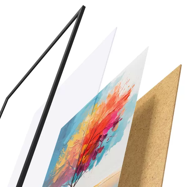 Plakat koosneb raamist, pleksiklaasist, trükitud pildist ja puitlaastplaadist alusplaadist. Tänu tagaküljel olevatele kinnitustele saab plakati kohe seinale riputada.