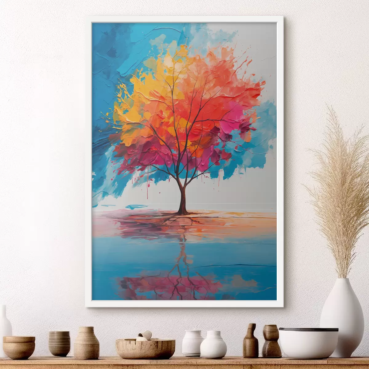 Plakat Abstraktne kirju puu järvel f40455