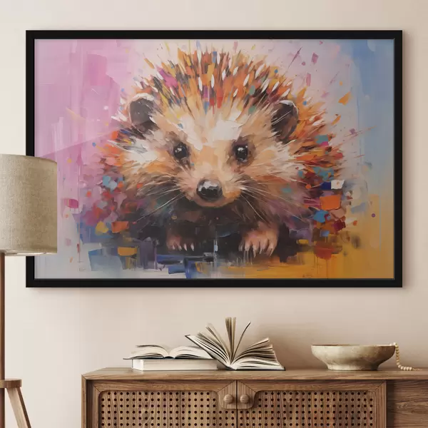 Plakat Erksates värvides, kollane, lilla, sinine, oranž, pruun, siili portree f40532