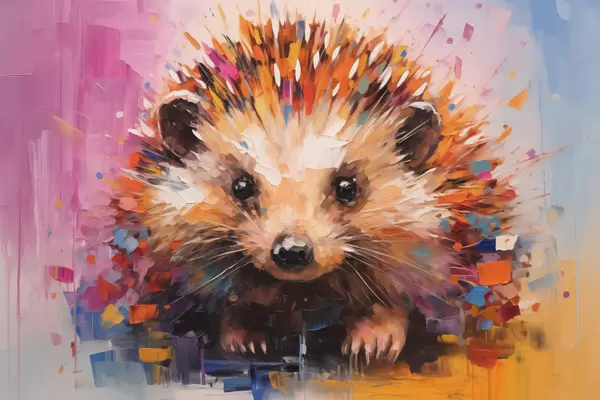 Plakat Erksates värvides, kollane, lilla, sinine, oranž, pruun, siili portree f40532