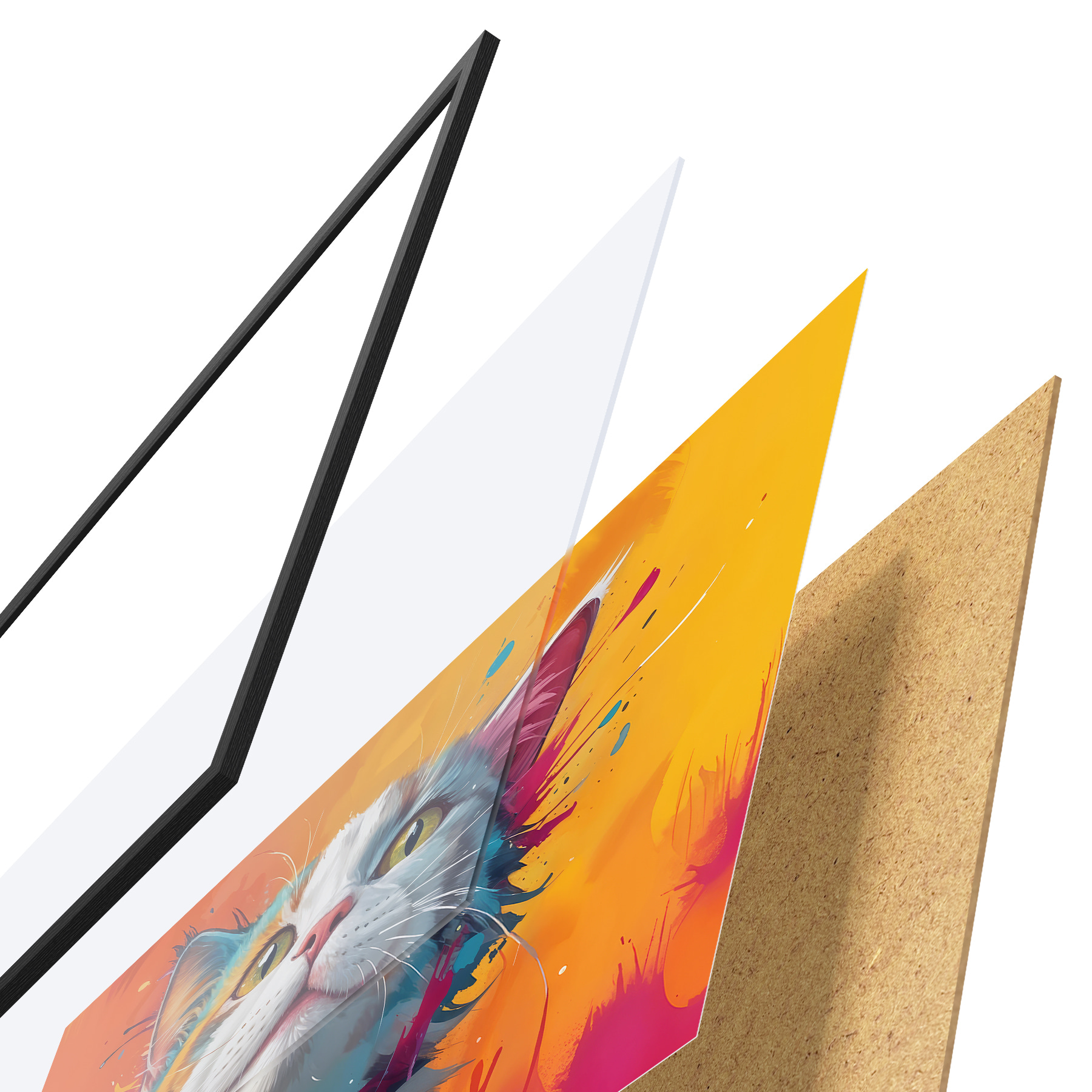 Plakat koosneb raamist, pleksiklaasist, trükitud pildist ja puitlaastplaadist alusplaadist. Tänu tagaküljel olevatele kinnitustele saab plakati kohe seinale riputada.