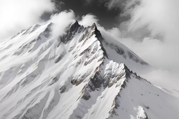 Poster Lumised mustvalged mäetipud pilves dramaatilisel maastikul Nr f40553