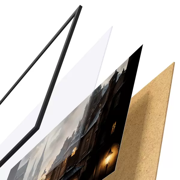 Plakat koosneb raamist, pleksiklaasist, trükitud pildist ja puitlaastplaadist alusplaadist. Tänu tagaküljel olevatele kinnitustele saab plakati kohe seinale riputada.