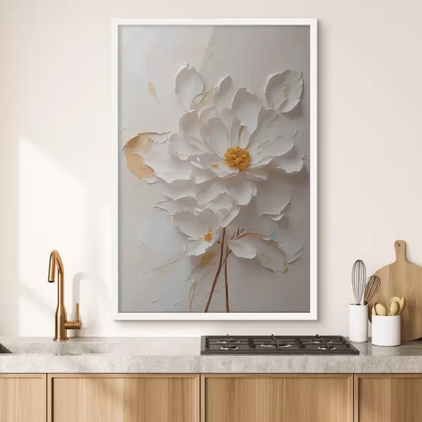 Poster Valge lill õlis pruuniga varrega Nr f40619