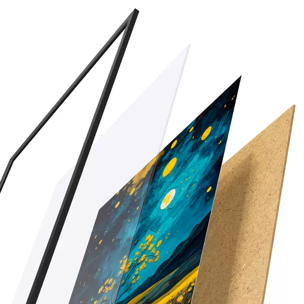 Plakat koosneb raamist, pleksiklaasist, trükitud pildist ja puitlaastplaadist alusplaadist. Tänu tagaküljel olevatele kinnitustele saab plakati kohe seinale riputada.