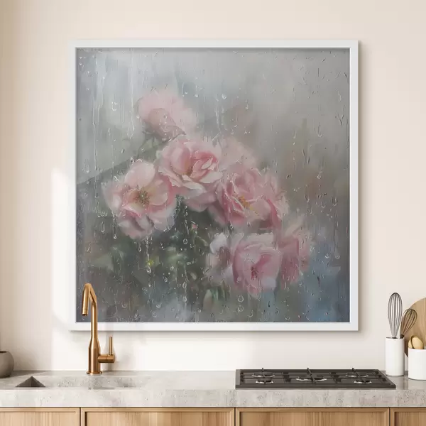Poster Roosade roosade kimp akna taga vihmase ilmaga Nr f40656
