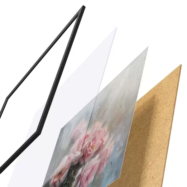 Plakat Roosade roosade kimp akna taga vihmase ilmaga f40656