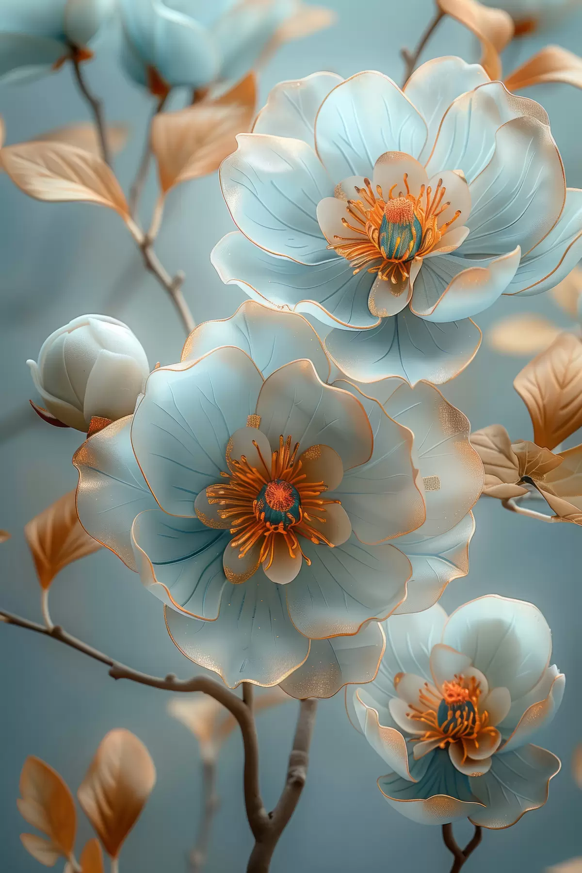 Poster Sinised pojengid oranži aktsendiga Nr f40676
