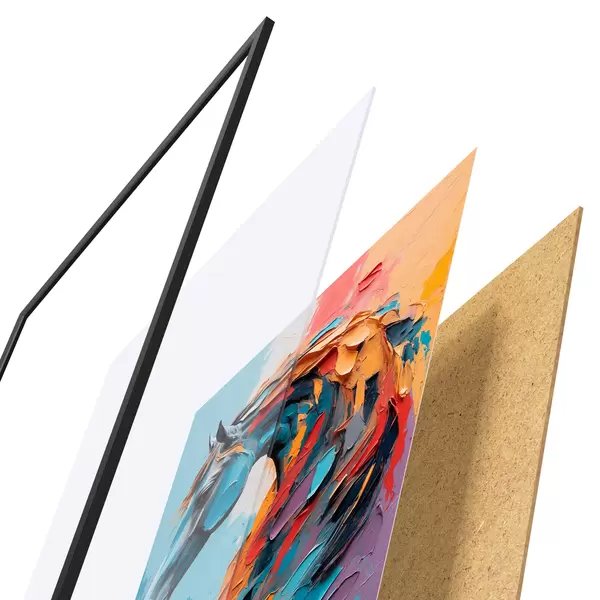 Plakat koosneb raamist, pleksiklaasist, trükitud pildist ja puitlaastplaadist alusplaadist. Tänu tagaküljel olevatele kinnitustele saab plakati kohe seinale riputada.