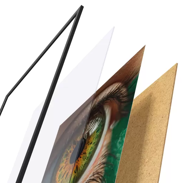 Plakat koosneb raamist, pleksiklaasist, trükitud pildist ja puitlaastplaadist alusplaadist. Tänu tagaküljel olevatele kinnitustele saab plakati kohe seinale riputada.