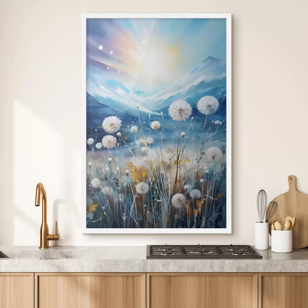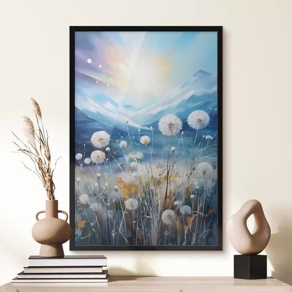 Poster Valged võililled siniste mägede taustal Nr f40720